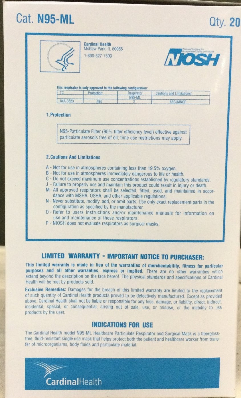 - Case of 120 N95 Masks (20/bx - 6 bx/cs)