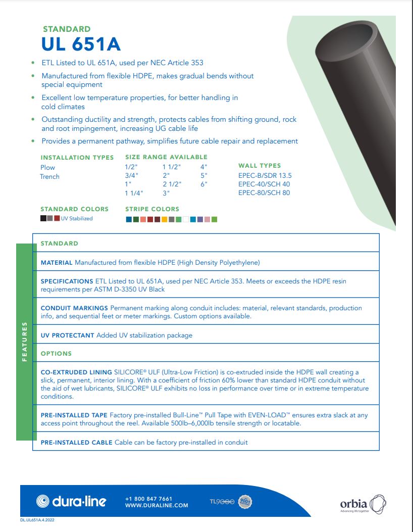 Dura-Line 1-1/4" Schedule 80 HDPE Smooth Wall Conduit - Gray - 9,000ft Roll