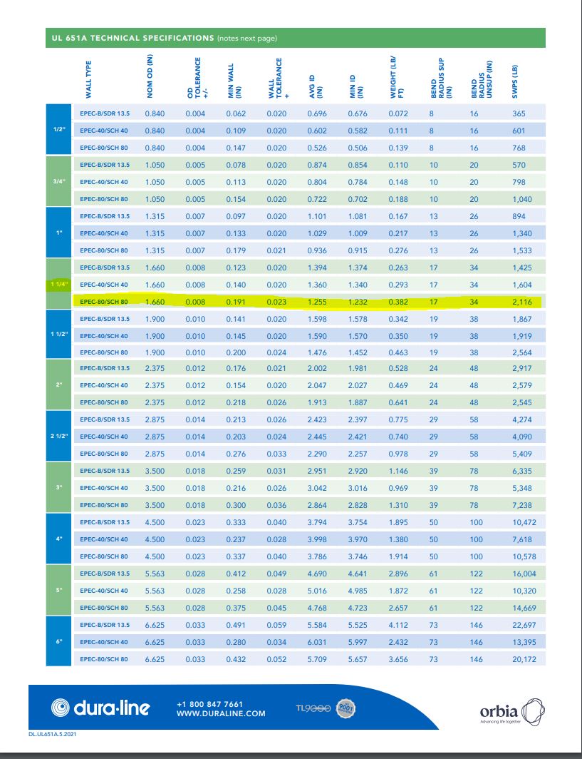 1-1/4" IPS Schedule 80 HDPE Smooth Wall Conduit - Gray
