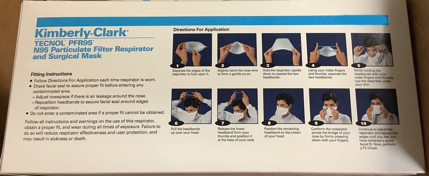 Kimberly-Clark TECNOL N95 Respirator and Surgical Masks 62126 - Size: Regular (Box of 50) New-Surplus Stock